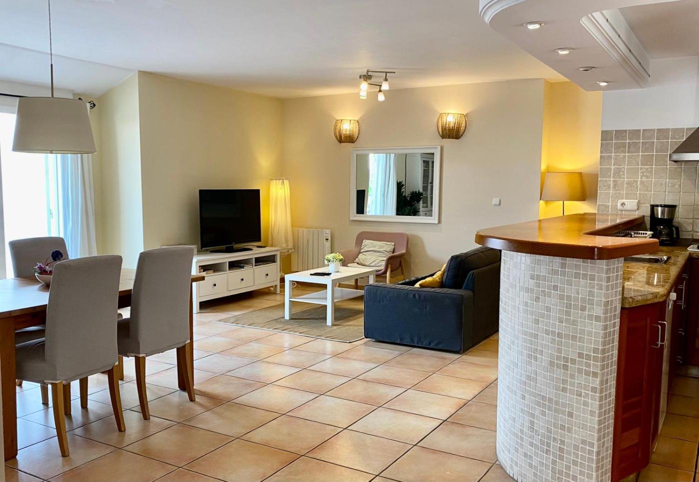 El apartamento cuenta con 2 dormitorios, 1 baño, ropa de cama, toallas, TV de pantalla plana con canales vÃa satélite, cocina totalmente equipada y terraza con vistas a la ciudad.