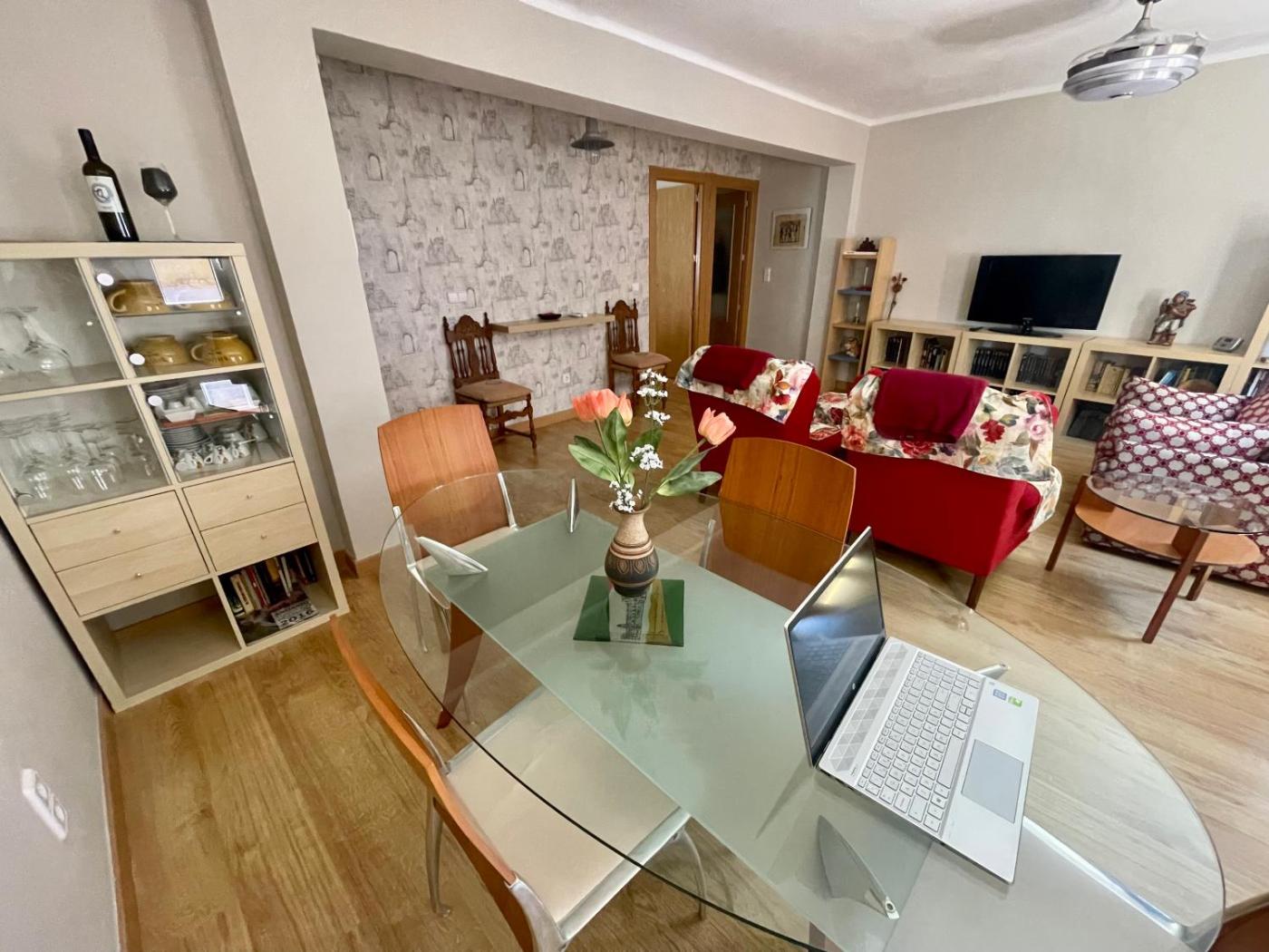Apartamento de 2 dormitorios. This apartment consists of 1 living room, 2 separate bedrooms and 1 bathroom with a shower and a hairdryer. The well-equipped kitchen features a stovetop, a refrigerator, kitchenware and a microwave. The apartment has parquet floors, a seating area with a flat-screen TV, a washing machine, a dining area, as well as a wardrobe. The unit offers 4 beds.