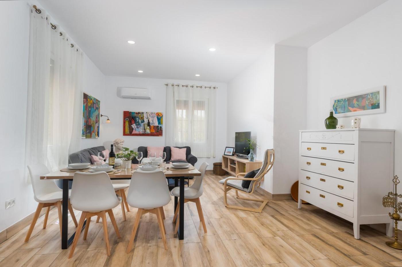 Apartamento con terraza. Boasting 3 bedrooms and 2 bathrooms with a shower, this spacious apartment has a well-fitted kitchen and a terrace. Guests will find a dishwasher, kitchenware, an oven and a microwave in the well-equipped kitchen. The apartment also includes a barbecue. The air-conditioned apartment features a TV with streaming services, a washing machine, a private entrance, a coffee machine as well as garden views. The unit offers 5 beds.