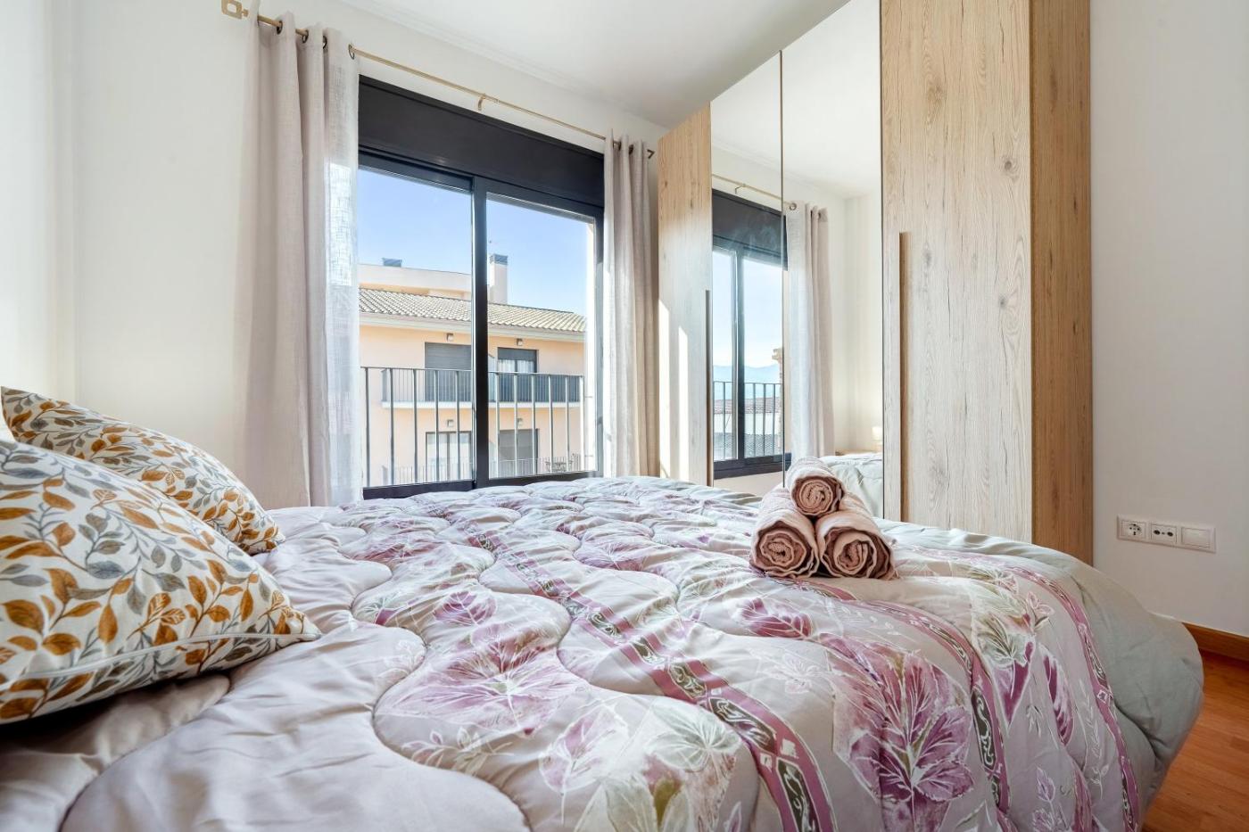 El apartamento tiene 2 dormitorios, 1 baño, ropa de cama, toallas, TV, cocina totalmente equipada y terraza con vistas a la ciudad.